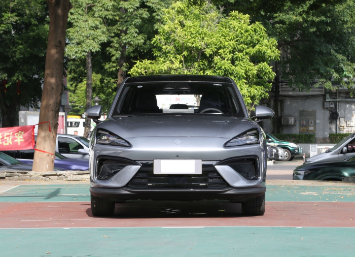 我们首先来看新车的外观设计方面,新车纯电版车型采用封闭式前格栅搭配三角形LED大灯组,灯腔内部三点式日行灯延伸出导风槽,整体呈现低趴科技感,风阻系数优化至0.34Cd。前保险杠下方梯形黑色网格与镀铬前铲形成视觉反差,增强运动张力。插混版车型保留横幅式进气格栅,前包围两侧采用夸张的三段式熏黑设计,发动机散热需求造就更具攻击性的造型语言。两种版本均标配自动LED大灯,灯组支持动态迎宾效果。
